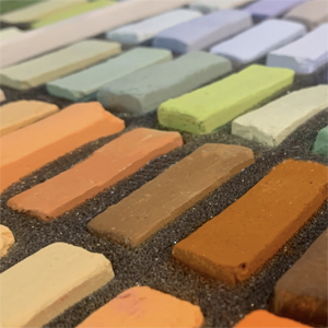 Diese harten Pastelle gibt es als Reihe von Pastellstiften und Kuben (Pastel cubes) mit identischen Farben; 6 Farbtöne pro Set.