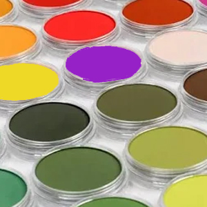 Pastell im Näpfchen. Durch verschieden geformte Schwämmchen wird das Pastell angelöst und damit auf den Untergrund aufgetragen und eignet sich hervorragend für nahtlose Farbübergänge