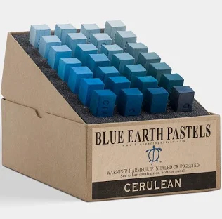 Die Pastelle werden von Blue Earth als Farbsets mit 28 Stk. angeboten, also Blautöne, Grüntöne etc. Das Sortiment umfasst 12 Sets à 28 Pastellen = 336 Pastelle. Dann gibt es noch Sets für Landschaft, Portrait und Grundfarben. Blue Earth verwendet auch Eisenoxid-, Titan-, Kobalt- und europäisch hergestellte Cadmiumpigmente und somit sollte man große Staubmengen vermeiden oder mit Schutzhandschuhen und Staubmasken arbeiten.
