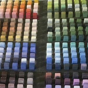 Diese harten Pastelle gibt es als Reihe von Pastellstiften und Kuben (Pastel cubes) mit identischen Farben; 6 Farbtöne pro Set.